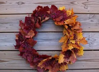 Couronne de feuilles Maintenant, il s'agit de saisir l'occasion de ramasser de fines feuilles de toutes les couleurs de l'automne......