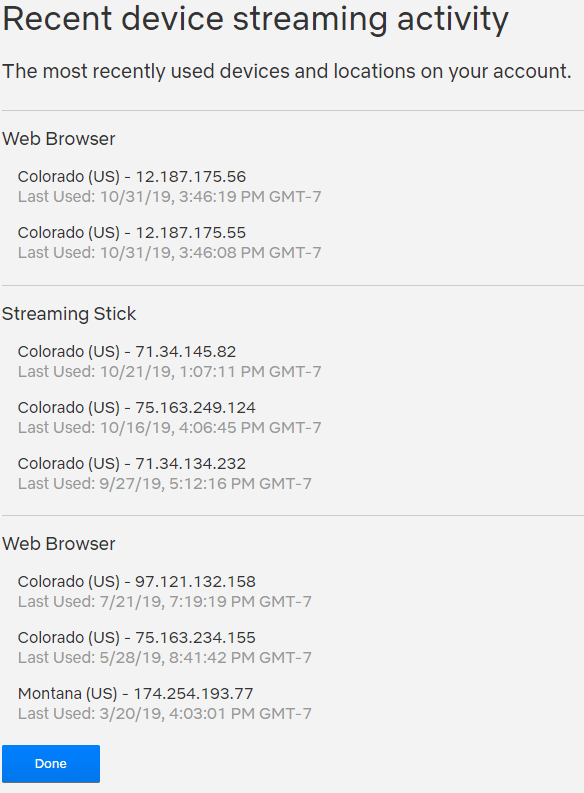 Pour mettre les choses au clair et savoir qui utilise l’accès Netflix, il reste possible de consulter la liste des appareils et adresses IP rattachées au compte.